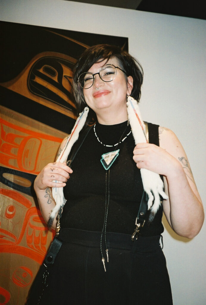 In this role, bailey’s work sits at the intersection of cultural labour, institutional intervention, and community care. They have curated the Indigenous Takeover of Making Waves, the gallery’s creative speaker series, prioritizing Indigenous voices across disciplines and generations. they’ve hosted community beading circles, creating low-barrier spaces for gathering, making, and conversation. Previous programs include a drum-making workshop led by Donna Manson, as well as a wide range of workshops and classes for folks of all ages and identites. Central to bailey’s approach is the belief that Indigenous presence within institutions must be lived, relational, and accountable – not symbolic.